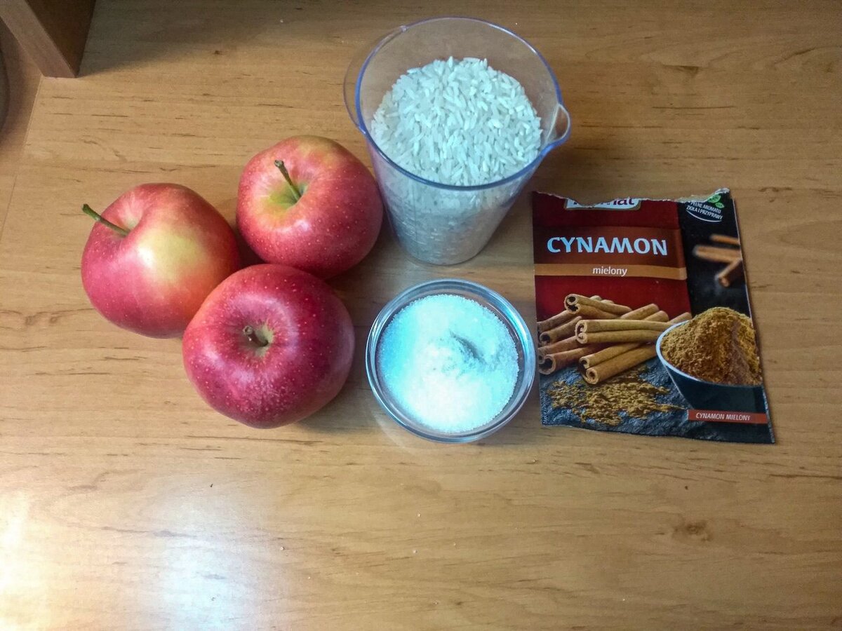 Ингредиенты: * Рис - 100 гр; * Яблоки - 3 шт; * Вода теплая - 200 мл; * Сахарная пудра - 3 ст.л; * Соль - 1 щптк; * Молотая корица - 2 щптк. Инструкция приготовления: 1. Для начала подготовим ингредиенты. Снимим кожура с яблока, нарежим кубиками. Промоем рис кипяченой водой. 2. На плите в кастрюлю зальём кипяченую воду, добавим яблоки, нашу сахарную пудру и конечноже корицу. После того как вода закипит, добавляем рис и варим минут 10, после чего закрываем кастрюлю крышкой и даем рису набрать вкус яблока и корицы. Даем еде остыть, и наслаждаемся послевкусием блюда.