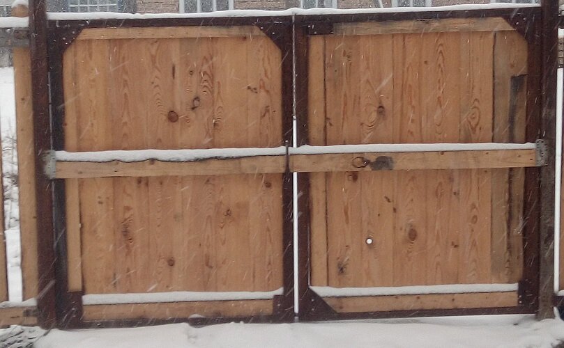 Створки ворот можно делать из металла, из дерева или комбинированные. В нашем случае, будем делать комбинированные ворота. Из собственного опыта эксплуатации разных типов ворот, сделал следующие выводы: