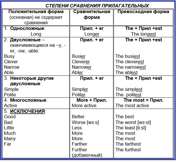 Отличная помогалка для формирования степеней сравнения прилагательных!