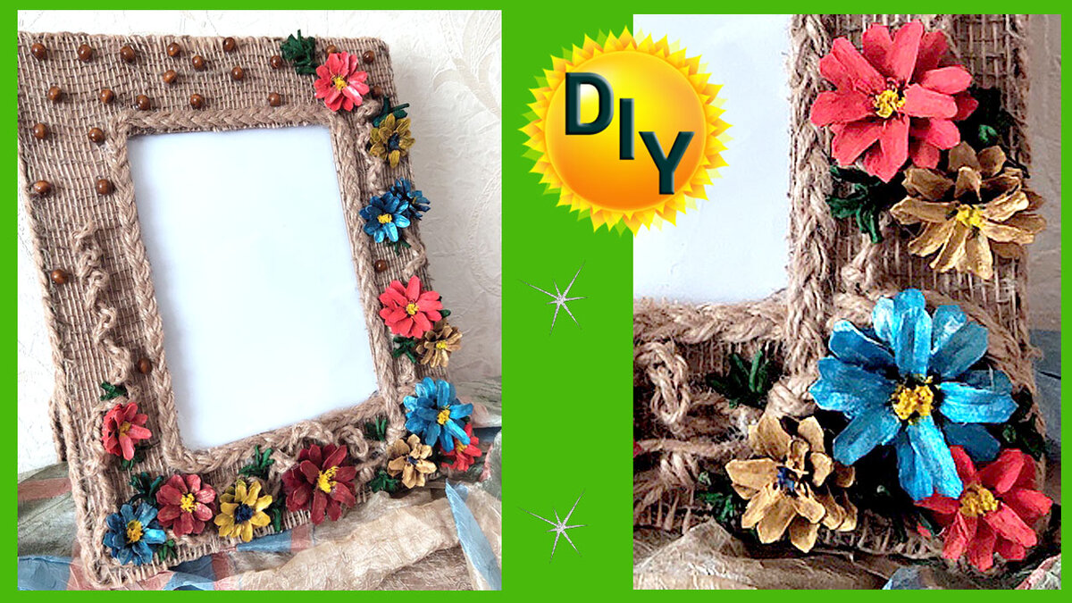 Расскажу о том как сделать фоторамку из джута, мешковины и крашеных шишек своими руками. Рамку делаем сами из картона. Процесс изготовления Делаем рамку под фотографию 15 см на 20 см . Вырезаем лицевую сторону размером 25 см на 30 см. Внутреннее окошко 14 см на 19 см. Тыльная сторона размер 25 на 30 см. Склеиваем лицевую с тыльной стороной. (способ указан в видео) Оклеиваем тыльную и лицевую сторону. Украшаем косой из джута и крашенными шишками. Делаем подставку . DIY/рукоделие. Эксперимент на канале. Все видео можно посмотреть на канале DIY/рукоделие