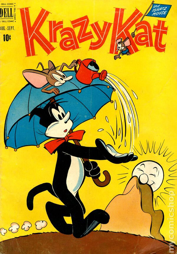 Культура комиксов стала попсовой и масштабной. С чего всё началось и когда это произошло, никто уже и не вспомнит, хотя в предыдущих статьях мы с вами разбирались с историей возникновения комиксов и говорили о первых американских предшественниках привычных нам комиксов. А сейчас мы поговорим об одном из самых топовых комиксов - “Сумасшедший кот”. Эта работа стала культовой! Сюжет заключался в истории очень странной, неподобающей влюбленности главного героя, кота Крэйзи, в бойкую, постоянно увиливающую мышь Игнац. Грызун на все “подкаты” кота так и норовит размозжить ему череп каким-нибудь “случайно” упавшим сверху кирпичом. Но от всех этих выходок у Крэйзи лишь крепнет вера в истинную любовь (ну правильно, он же Крэйзи). Со временем автор комикса Херриман создает еще одного персонажа в истории о странной парочке - собаку Офисса Пупа, который всегда встает на защиту кота, так как не может видеть такое издевательство. Из-за такого вмешательства грызун частенько попадает за решётку. Из