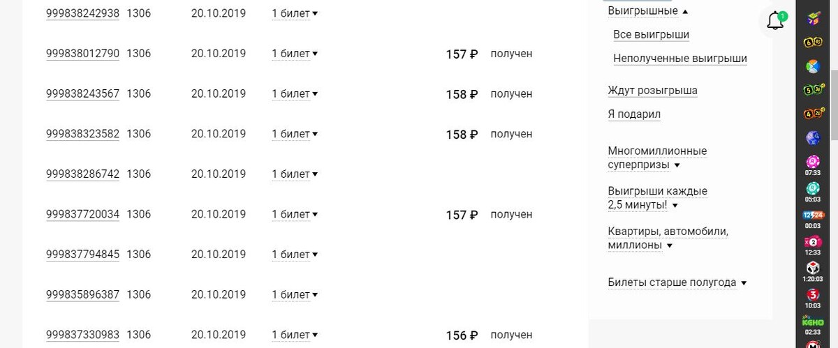 Сидел я как то вечером перед телевизором пил пиво, как пришла смс-ка, мол разыгрываем миллиард между всеми участниками и подпись "Русское лото". Мне как то по барабану конечно, не привлекло. И как то мысль засела, мозг начал рассчитывать, если вдруг побольше билетов купить наверняка в выиграше останусь. Нууу, думаю, повезет..... До 20 октября оставалось 2 недели, думаю с моим хреновым заработком придется отложить на эту забаву, может и пивка не попить в выходной но вдруг повезет. Стал с каждой сотни отложенной покупать по билету, покупку производил в электронном виде, ну мы же все таки в современном мире живем) Да и проще, как то наблюдал в "Пятерочке" покупку билета когда бабка покупала билет и не один и каждый надо регистрировать, да еще помнить свой номер телефона, который старость позабыла напрочь, а ты стоишь с одним батоном и проклинаешь эту лотерею и думаешь: "что жизнь с людьми делает, как в нищету вогнала, что в лотереи уже верит!"😁😢😢😢😢 Ну правда, раньше помню ребенком