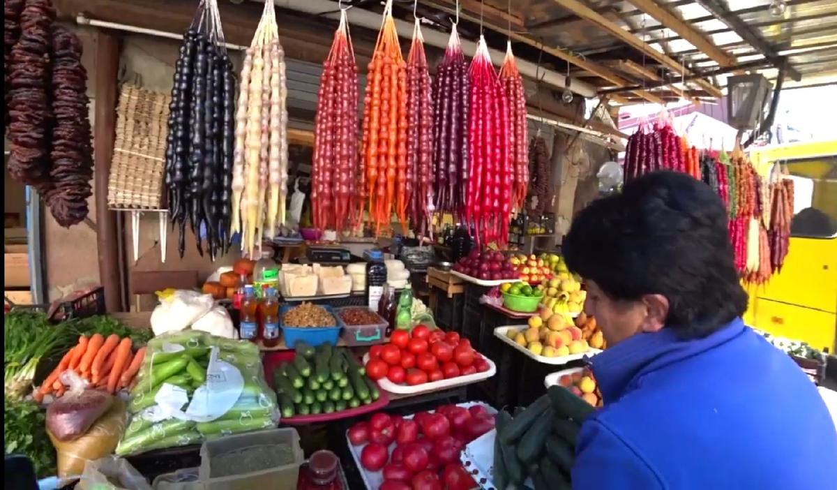 В Тбилиси я был в середине мая этого года, ещё до всем известных скандалов, в которые сейчас не хочу комментировать. Но сегодня речь пойдёт о случае, в который мне пришлось "влезть" ближе к вечеру первого дня, когда я ещё осматривал Тбилиси, а желудок начинал требовать своё. Выбор пал на центральный рынок города, который находился почти в шаговой доступности от всех достопримечательностей и при этом не сильно "кусался" ценой. Ходя между пыльными рядами городского рынка у меня глаза на лоб ехали от цен: Томаты по 2-2,5 лари ( 40-55 рублей на наши деньги), клубника от 2.3 лари (45 рублей), спелые баклажаны по 1,8 лари (37 рублей).... Накупил всего по немногу в дорогу ( В Тбилиси был лишь 2 дня). Про рынок вообще отдельная тема, про которую напишу в следующий раз. Спустя где-то 40 минут блужданий по рынку, желудок вновь напомнил о себе, есть захотелось ещё сильней.В одной из рекреаций мне удалось найти очень аппетитные ( на первый взгляд! чурчхелы). Уж не помню, сыграло ли на моих чувст