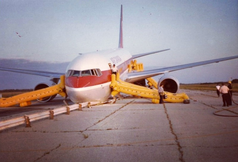 История, на самом деле, весьма крутая. Даже недавний случай на кукурузном поле не такой захватывающий, как этот! 23 июля, в далеком 1983 году для канадского рейса Boeing-767 ничего не предвещало беды. Волей случая, этот самолёт подвергся ошибки со стороны обслуживающего персонала. В этом же году в Канаде производился переход на метрическую систему. Внезапно футы стали метрами, а галлоны - литрами. Из-за этого "неожиданного" перехода, наземные работники заправили самолёт маленьким количеством топлива для предстоящего рейса. Экипаж об этом догадался не сразу. Лишь на высоте 10 000 метров у лайнера отказали оба двигателя, ведь весь керосин - закончился. Большая часть приборов перестала работать. Питание получали лишь те приборы, которые были подключены к ветрогенератору. В их числе была радиосвязь. Как вы понимаете, единственным вариантом спасения пассажиров, экипажа и самолёта в целом, являлся профессионализм пилотов и чистая удача. Но удача явно была на сторон