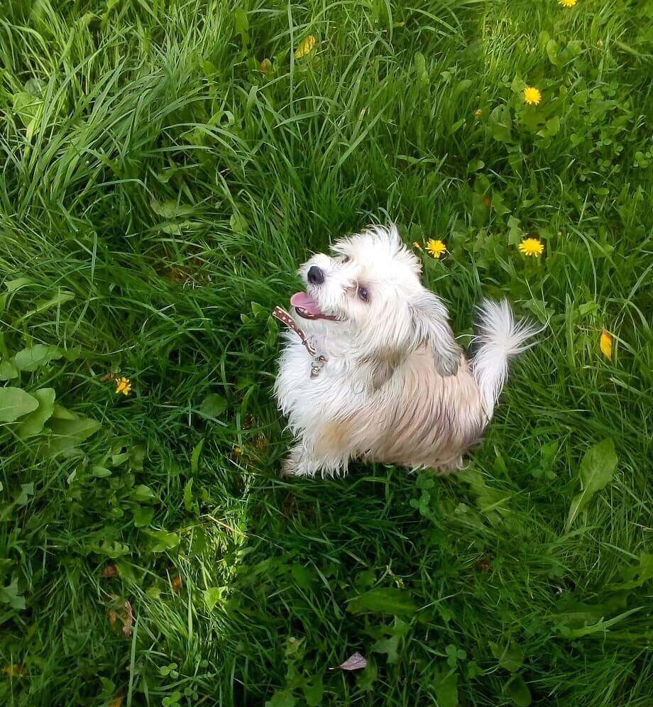 Весь оставшийся день прошёл как обычно. Я спала, кушала, играла, гуляла и выполняла команды. Вечером вся семья сидела на диване и смотрела фильм про космос, планеты и какую-то катастрофу. Впрочем не важно, так как мне не по душе просмотр кино. Вместо этого я пошла в детскую к своей лежанке. У входа в комнату меня ждали два волнистых попугая. «Почему они волнистые? Они не похожи на волны в море», - размышляла я. Вообще я не любительница птиц, но погонять для забавы люблю. Они так прикольно улетают, когда испугаются! Подойдя к лежанке, я замерла. Что-то или кто-то ходит по комнате. — Кто здесь!? - тявкнула я, - выходи и не прячься! Всё равно найду! — Тихо, тихо, - начал незнакомец, - я друг. — Друг? - не поняла я, всё ещё оскаливая маленькие, острые зубки. Гость вышел на свет, и оказалось, что это собака. Точнее пёс. Вроде цвергшнауцер серого цвета, почти серебристого, местами чёрного с белыми пушистыми бровями. Его усы забавно лежали на мордочке, а глаза сверкали искорками. Хвост покач