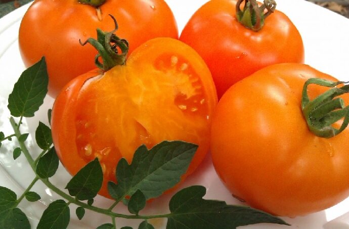 Добрый день любители выращивания томатов, подписчики и гости канала. Я хочу представить вашему вниманию среднеспелый, урожайный, среднерослый сорт томата "Апельсин". Этот томат, отечественной селекции, довольно недавно появился на рынке, где-то в 2000 году. "Апельсин" считается лидером среди оранжевых томатов. Куст достигает в высоту полутора метров. Томат этого сорта предназначается для выращивания как в открытом грунте, так и в теплицах. Плоды этого томата полной спелости насыщенного оранжевого цвета, масса плодов 200-300 грамм, бывают вырастают до 400 грамм. Плоды округлые, выровненные и насыщенного оранжевого цвета, по форме и цвету напоминающие апельсин. Этот сорт среди огородников-любителей стал довольно таки популярным из-за своей неприхотливости в выращивании, довольно крупных плодов и их отменных вкусовых качеств. Плоды имеют повышенное содержание бета-каротина, сладкие, очень вкусные, с тонким ароматом. Сорт имеет хорошую завязываемость плодов в экстремальных условиях, пре