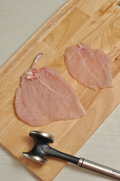 - Каждую куриную грудку вымыть, зачистить от жира и убрать остатки костей и хрящей. Если у Вас есть весы взвесьте зачищенные филе. Обычно одно филе бройлера весит 250г.
