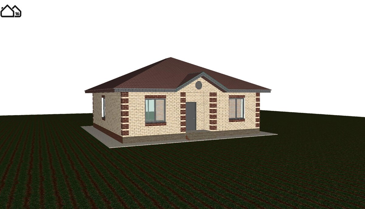 Данный дом предназначен для заселения семьей из 3-4 человек. Планировка дома решена следующим образом - при входе в дом мы попадаем в тамбур и далее в общую зону гостиной-кухни, из которой можно попасть в спальни и ванную комнату. Из гостиной организован выход на приусадебный участок. Крыльцо утоплено в тело дома и может быть застеклено для образования холодного тамбура. При этом необходимо организовать входную площадку перед витражом глубиной не менее 1.35м. Основные архитектурно-строительные решения: