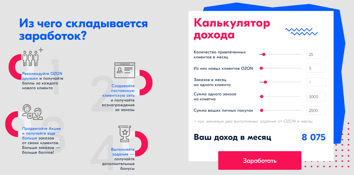 Клиенты онлайн-ритейлера могут получить статус «Менеджера», который позволит им получать бонусные баллы за привлечение новых пользователей. Онлайн-ритейлер Ozon запустил реферальную программу — клиенты теперь могут получать баллы за привлечение новых пользователей. Соответствующий раздел уже появился на сайте Ozon. Чтобы принять участие в реферальной программе, пользователю необходимо подать заявку на получение статуса «Менеджера». Стать «Менеджерами» могут только те пользователи, которые тратять на Ozon как минимум 2,5 тыс. рублей в месяц. После одобрения заявки, клиент получает уникальный код. Когда новый пользователь при регистрации вводит этот код, он становится рефералом клиента — за каждый его заказ последнему будут начисляться баллы, которыми можно оплатить от 25% до 100% стоимости покупки. Пользователи со статусом «Менеджера» также получают 3% кэшбэк от суммы покупок. Кэшбэк начисляется в баллах. За каждого привлеченного пользователя «Менеджеру» начисляется 500 баллов. За кажд