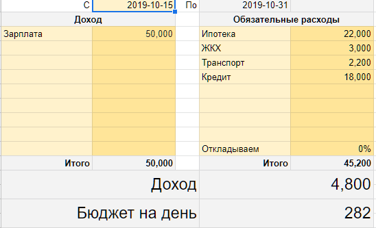 Со мной случилось то, чего я боялась. Ранее я уже писала, что взяла квартиру в ипотеку и в этом месяце из-за больничного я ушла в серьезный минус. Дошло до того, что сейчас мои выплаты по ипотеке и кредиту (взятому на лечение) составляют 40 000 рублей. При зарплате в 60 000. В этом месяце я получила зарплату 50 000 из-за больничного и после всех обязательных выплат осталось 4000. Теперь я сижу и думаю, как же до зарплаты мне продержаться на эти деньги? И это с учетом того, что у меня почти пустой холодильник и не оплаченный проездной. Я прочитала много статей и нашла интересную таблицу по подсчету трат. Итак, что мы по ней имеем: Таблица, в которую вписывается доход и основные траты. Ниже указывается свободный остаток. На самом деле можно жить. Очень смешно осознавать, что кредит на лечение (в месяц) стоит примерно также, как и моя ипотека. Сейчас многие на меня могут ополчиться: "Ну ведь пол России так живет!". Не исключаю, но жить в Москве довольно дорогое удовольствие, д