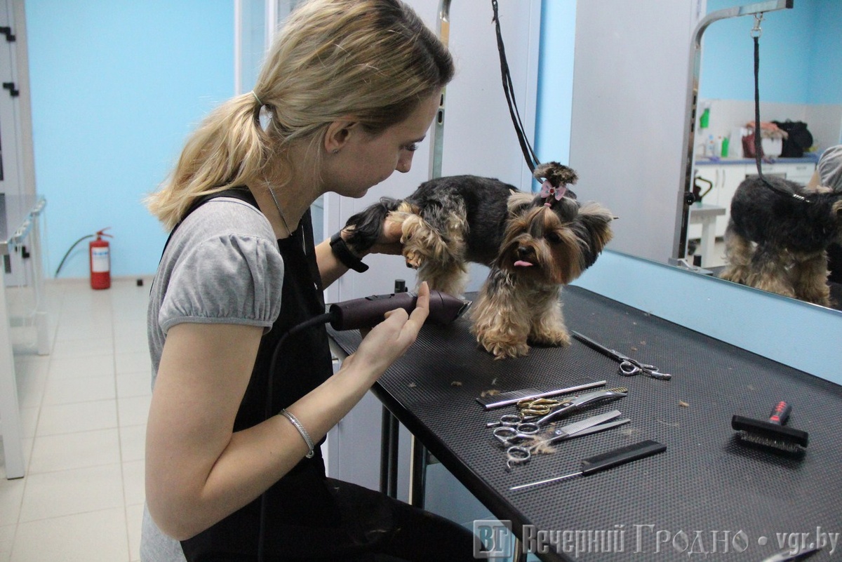 Не только девушки и парни следят за собой, но и хозяева домашних животных стараются, чтобы их питомцы хорошо выглядели. В последнее время услуги специалиста по уходу за животными (грумера) пользуются всё большей популярностью. Причём на собак и кошек тратят порой не меньше, чем на самих себя. Клиенты бывают кусачие Яна Волкович, ветеринар по образованию, занимается грумингом два с половиной года. Девушку застала за работой — она как раз только искупала йоркширского терьера по кличке Моника, вычёсывала колтуны. Ей предстояло привести в порядок окантовку лапок и мордочки и подстричь когти. На время процедуры хозяйка собачки ушла по делам. Моника, видимо, понимая, что бежать некуда и спасения ждать не от кого, изо всех сил пыталась послушно сидеть на столике. — Моня, дам по попе, — как с маленьким ребёнком говорит Яна и объясняет: — Владельцев мы специально просим выйти или тихонько наблюдать за происходящим за дверью (для этого она у нас стеклянная). Стоит хозяину чихнуть, кашлянуть или