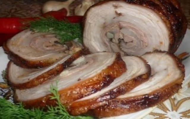 Сочный рулет из сала с чесноком и окорочком. Едим вместо колбасы