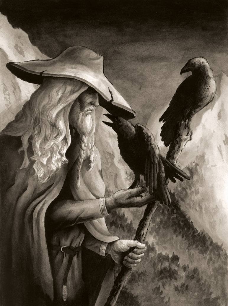 Каждое утро Один посылал в мир двух воронов, носивших имена Хугин (думающий) и Мунин (помнящий), к вечеру он с тревогой ожидал их возвращения. Затем, сидя на плечах Одина, они нашептывали ему все то, что видели и слышали. Таким образом, он узнавал обо всем, что происходило на земле.