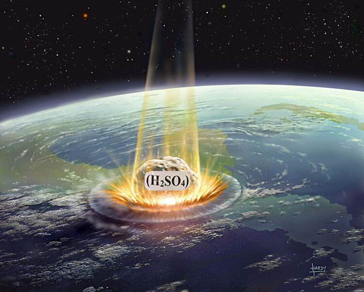 Как оказалось, непосредственно после падения метеорита около 66 млн лет назад океанские воды пережили резкий всплеск кислотности. По мнению ученых, метеорит мог угодить в залежи сернистых минералов, окисление которых с последующим выпадением в море и стало причиной закисления акватории серной кислотой, образовавшейся в ре