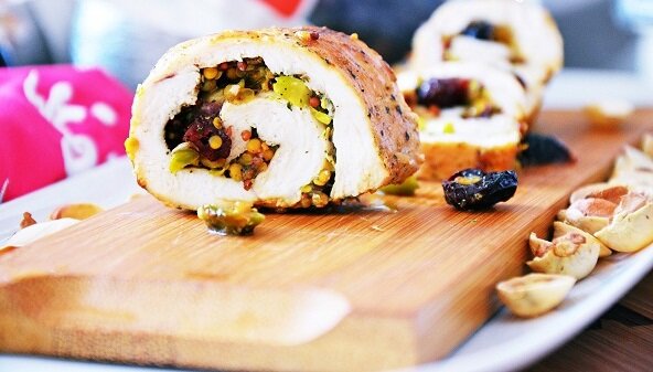 Ужин из индейки с фисташками и клюквой, простое блюдо как в ресторане
