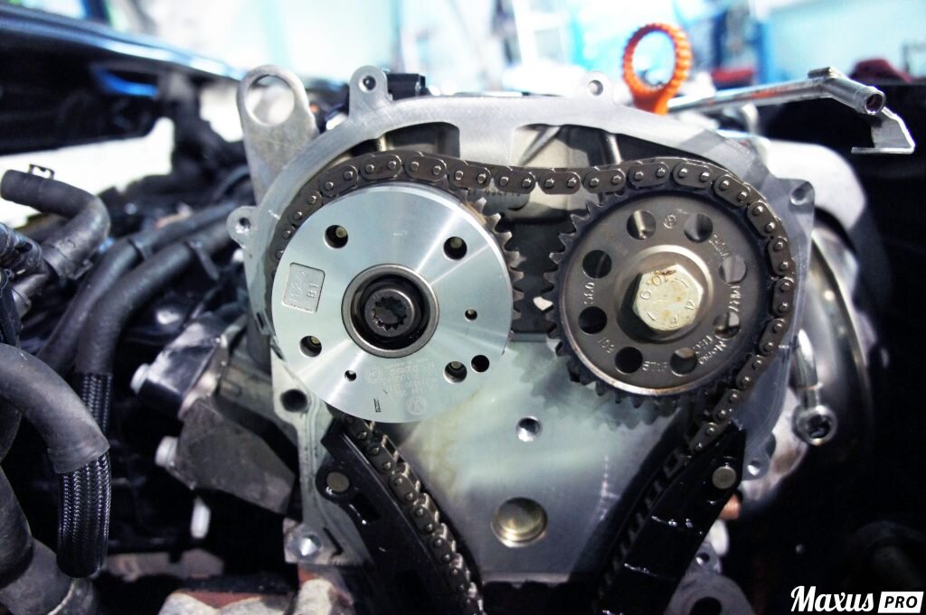 Volkswagen Scirocco 1.4 TSI CAXA замена цепи ГРМ На автомобиле Volkswagen Scirocco 2011 года выпуска заменили цепь ГРМ на ремкомплект нового образца. На данном авто установлен бензиновый мотор 1.4 турбо мощностью 122 л.с. Этот двигатель серии EA111 с цепным приводом ГРМ и буквенным обозначением CAXA. На данном автомобиле мы меняли не комплект цепи , а ремкомплект в который по мимо цепи, успокоителей и натяжителя входят фазовращатель, звезда распредвала и звезда коленвала, так выходит на много выгодней. 03C 198 229 C — ремкомплект цепи ГРМ включает в себя: 03C 109 158 H — цепь ГРМ