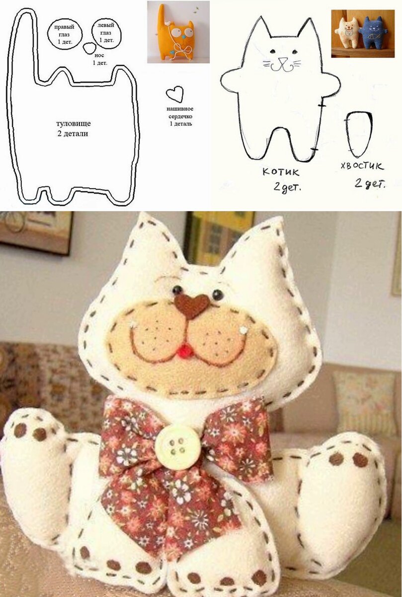 Мы предлагаем вам сшить котиков различных форм из ткани. Хорошо подобранная ткань прекрасно впишется в ваш интерьер, также такие мягкие котики могут послужить вам вашей универсальной подушкой или же просто необычно оригинальной игрушкой. Все, что вам нужно, это придумать какого котика вы хотите. Большого, маленького, вытягивающего лапки или же свернувшегося в клубочек. А после вам понадобится ватман, на котором вы нарисуете так называемые трафареты, вырежете их, а по ним уже будете вырезать детали из ткани. Далее вам остается только совместить вырезанные части и сшить их между собой, набив чем-то мягким. 2. Домик для хвостатого.