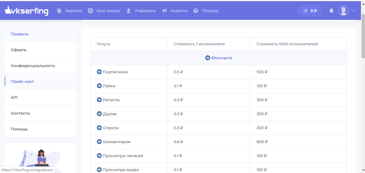 Сегодня только зарегистрировался сам в сервисе vkserfing.После регистрации нужно пройти верификацию через телефон.Чтобы начать зарабатывать нужно подключить свой профиль вконтакте.Если вы хотите раскрутить группу,то вам в раздел рекламодатель,цены приемлимые 50 коп за подписчика в группу.Когда регистрировался заметил что пользователей сервиса более 1 млн.и выплачено более 6 000 000 руб.В общем здесь сервис пригодиться и тому кто хочет заработать,и тому кто готов раскрутить свои соцсети за деньги.
