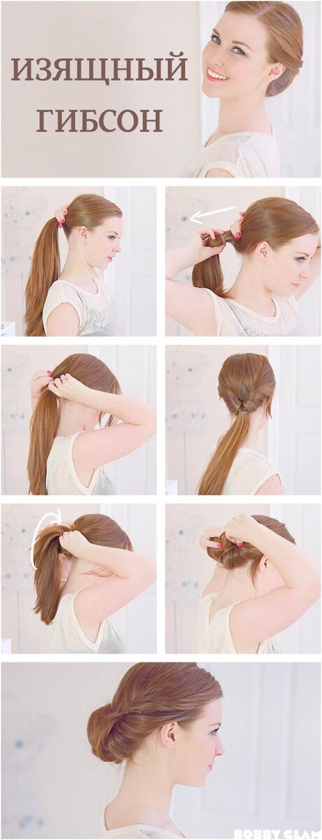 Если вам надоело ходить всегда с одной и той же прической, но вы не знаете, что вам сделать другое, но чтобы это было просто и быстро, тогда вы зашли по адресу. В этой статье будут представлены самые простые прически на каждый день для средних и длинных волос с пошаговыми инструкциями. 1.Причёска Изящный Гибсон. Начнём с самой простой, которую можно сделать своими руками за 5 минут. Это великолепный способ превратить простой конский хвост в изящный гибсон. 2.Причёска «бантики». С помощью такой хитрости можно украсить любую косу. Этот трюк можно вполне использовать для причёски на выпускной. Используйте такие бантики из волос и украшайте ими свои повседневные прически. 3.Причёска Тройной Конский Хвост. Если вы не можете распрощаться с конским хвостом,который привыкли делать каждый день,то есть прекрасная альтернатива. 4.Причёска Скрученная Коса. Этот идеальный вариант прически на длинные волосы подойдет в офис или для торжественного случая. Подобное переплетение прядей соз