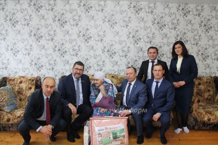 Аны гомер бәйрәме белән район башлыгы Нәҗип Хаҗипов, Дәүләт Думасы депутаты Борис Менделевич һәм башка җитәкчеләр тәбрикләде. Махриҗамал әбигә җитәкчеләр җылы теләкләрен җиткереп чәчәк бәйләме, истәлекле бүләк тапшырды.