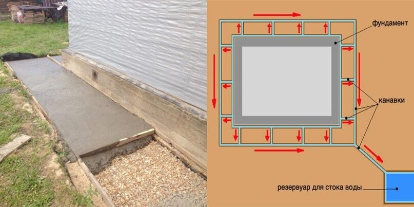 Геометрические параметры отмостки зависят от грунтовых условий площадки. , для зданий и сооружений, возводимых на площадках с грунтовыми условиями II типа по просадочности, ширина отмостки должна быть не менее 2 м и перекрывать пазухи.