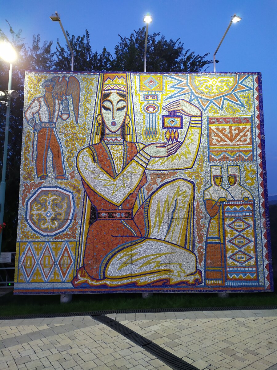 Алматы считается заповедником интересной советской архитектуры, а настоящая визитная карточка города — яркие мозаичные панно из смальты на стенах. Современные хозяева и арендаторы зданий не всегда понимают, что имеют дело с подлинным искусством. Забвение ждало бы и работу художников Молдахмета Кенбаева и Николая Цивчинского, если бы не Алпамыс, сын Молдахмета Кенбаева. Мозаика «Сулушаш» или «Девушка с сувениром» был создана в 1970 году. Она украшала один из боковых фасадов дома по проспекту Достык, тогда — Ленина. На первом этаже находился магазин «Казахстан», где продавали национальные сувениры, поэтому девушка на панно держит в руках казахское украшение «алка». Авторы этой и еще нескольких мозаичных работ в Алматы и других городах Казахстана — известные персоны. Молдахмет Кенбаев — народный художник и заслуженный деятель искусств Казахской ССР, он был один из первых художников в Республике. Живописные работы Кенбаева хранятся в основном в государственном музее искусств Казахстана и