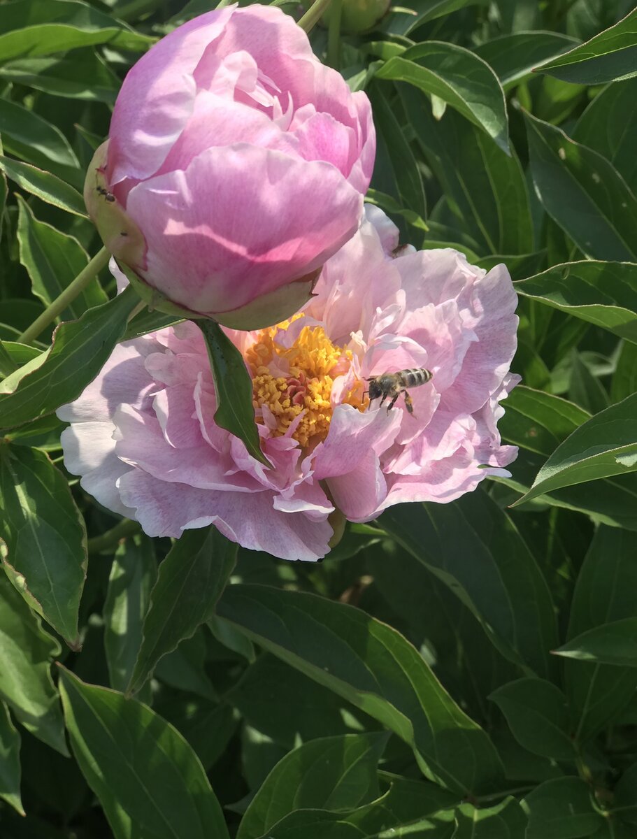 Куст пиона живет до 60 лет. Но, если он долго растёт на одном месте, то цветы могут мельчать и цветение становиться скудным. В этом случае пора пересаживать пион. Лучшее время для пересадки пионов это осень. Делать это нужно за месяц до устоявшихся заморозков. Обрежьте зеленые соцветия, чтобы остались веточки 15-20 сантиметров. Аккуратно выкопайте корень. После, разделите его с помощью садового ножа на части – деленки по 3 -6 почек. При делении куста важно, из какой части корневища взяты почки. В центре располагаются старые слабые почки, поэтому для посадки лучше брать боковые деленки, корневища длиной до 10 см. Срезы обязательно обработайте, можно зеленкой, фунгицидом или древесным углём. Пересаживать растения надо в заранее подготовленную посадочную яму. Яма должна быть глубокой, 60-80 сантиметров и широкой. Она должна обязательно постоять неделю, чтобы земля просела. Добавьте в яму минеральное удобрение или компост. Перед посадкой яму нужно хорошо пролить, удобренную землю