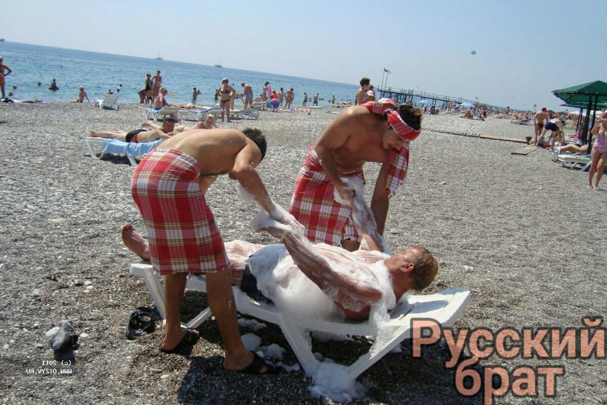 Доброго времени суток мои дорогие братья и сёстры, надеюсь, вы славно отдохнули этим летом. Ставьте палец вверх те, кто не променял наше российское черноморское побережье на турецкое, очень хочется знать сколько среди нас патриотов. Многие неравнодушны к различным СПА процедурам и поэтому во время отпуска стараются как можно больше укрепить здоровье этими самыми процедурами. Кто-то на черноморском побережье ходит на массажии, кто-то скармливает свои ноги рыбкам в специальных аквариумах, в общем каждый оздоравливается как может! Но этот мужик удивил меня больше всех, смотря на него мне почему-то сразу вспомнились, картины, когда мужики пригоняют свои тазики к речке и начинают намывать их шампунем, обтирания мочалкой из собственного душа. Если не поддерживаешь такую самомойку на речка, то жми палец вверх, чтобы таких мойщиков стало меньше! Но больше предыдущего мужика вас удивит только вот такой король пляжа. Как вам его самые обыкновенные королевские ботинки, мэд ин Африка?