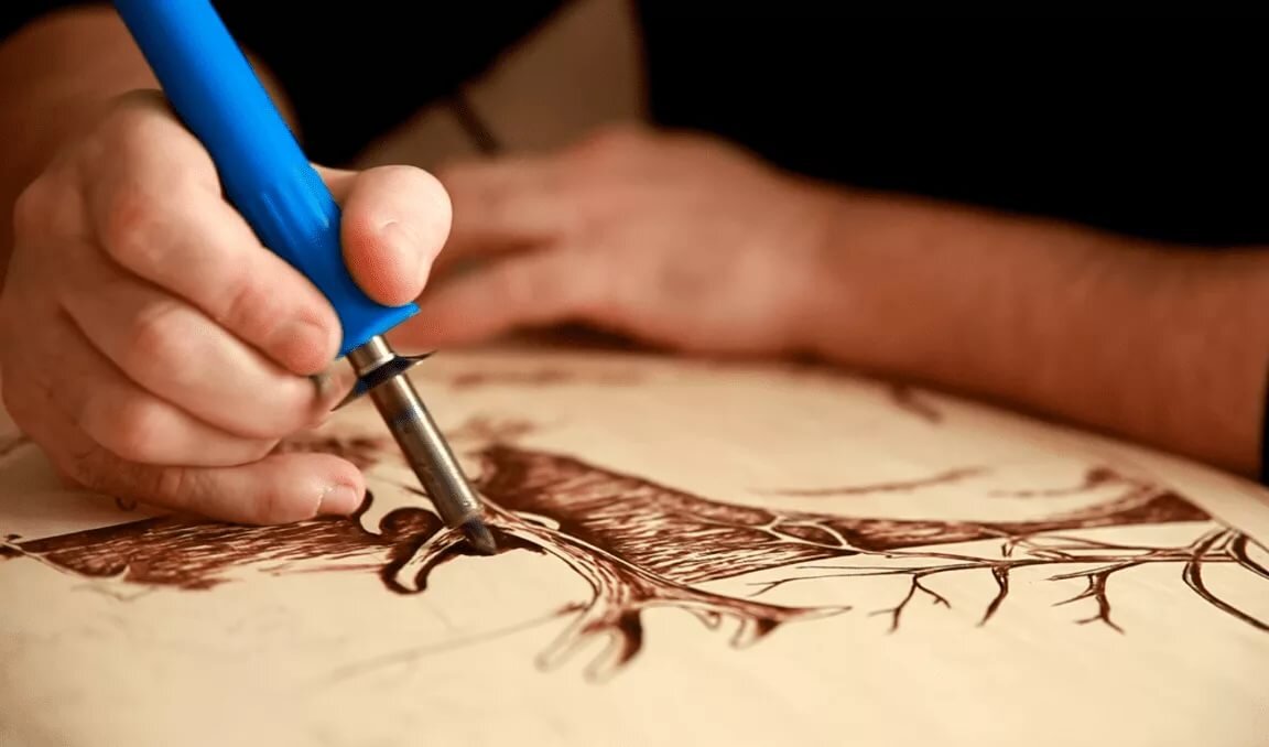 Если вы рассматриваете выжигание по дереву, как хобби, то вы на правильном пути. Выжигание по дереву интересное и увлекательное занятие. Этим хобби можно заняться в любом возрасте! Итак, представляем выжигание по дереву для начинающих. Выжигание по дереву для начинающих Выжигание по дереву называют пирографией. Особенно полезным, выжигание будет для детей. Поскольку, кроме того, что это увлекательно, занятия пирографией, развивают у них усидчивость и навыки мелкой моторики. Оборудуем рабочее место Правильно и удобно оборудованное рабочее место это 50 процентов успеха. Под рукой у мастера должны находится: Важно отметить, что рабочее место пирографа требует хорошего освещения и вентиляции. Рядом с выжигателем должна быть розетка. Выбор материала для выжигания Фанера отлично подходит для выжигания. А из деревянных досок лучше всего подойдут каштан, липа, ольха, тополь, осина. Дерево должно быть сухим, без сучков, с однородной структурой и светлая. На светлой заготовке рисунок будет выг