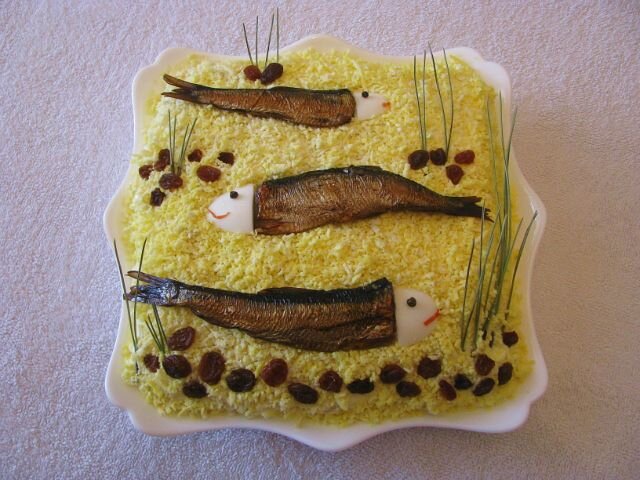 В советское время праздничные застолья устраивались не с таким размахом, как теперь. Коротко их главную идею можно охарактеризовать так: «Голь на выдумки хитра». Продукты использовались самые простые, но результат был всегда на высоте. Столы возглавляли разнообразные закуски. Традиционным было блюдо «Мимоза», украшение которого зависело от фантазии хозяйки. Одним из его вариантов — салат «Мимоза» со шпротами, встречали только самых дорогих гостей, потому что хорошие консервы были в то время дефицитом. Украсить салат — большое искусство Салат мимоза с консервами различаются по вкусу и составу. Но основной принцип остается неизменен: это многослойное блюдо, в основе которого лежат вареные и сырые овощи, рыбные консервы. Каждый слой пропитывается майонезом, а сверху закуска посыпается измельченным желтком. Что делает салат «Мимоза» с консервированными шпротами похожим на известное растение, цветы которого принято дарить на 8 марта. Правильное название дерева семейства мимозовые, которое