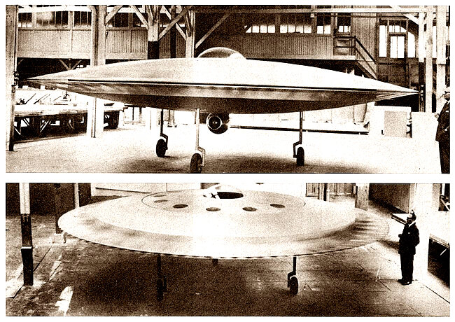 Американцы построили летающую тарелку Принято считать, что летающая тарелка - это средство передвижения исключительно наших братьев по разуму с других планет. Однако это далеко не так. На протяжении нескольких десятилетий в США разрабатывались и тестировались проекты летающих тарелок. В этой статье мы расскажем о самых выдающихся из них. Розуэлльский инцидент Ро версии исследователей началом освоения американцами технологии летающих тарелок послужил так называемый Розуэлльский инцидент. В 1947 в штате Нью-Мексико, США, близ города Розуэлл местный житель обнаружил неопознанный летающий объект, потерпевший крушение недалеко от его фермы. Спецслужбы забрали объект и через некоторое время объявили, что это радиолокационный аэростат. Однако местные жители были уверены, что объект неземного происхождения. В то же время спецслужбы начали разработку первых летательных аппаратов, они представлены ниже, на фото. Считается, что именно Розуэлльский инцидент (отдельная статья о котором скоро выйд