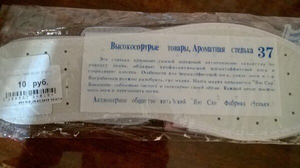 Вот в чём вопрос. Летом откопала свои старенькие, но очень удобные балетки. Решила их обновить маленько - купить стельки. Заморачиваться на дорогие не стала, забежала в магазин дешевых товаров и там их купила. На всякий пожарный решила почитать инструкцию. Вот, что там было написано: «Эта стелька применит самый передовой изготовление лекарства по рецепту врача, обладает профилактической дерматоффитовой нога и стерилизует плесень. Особенности для дерматоффитовой нога, гниль ноги и т.д. Потребители должны разобрать, где марка. Наша марка называется «Лю Сан». Внимание: соблюдаю чистоту и санитарию своей обуви. Каждый вечер мыть ноги и переменить носки». Читала долго, так как плохо понимаю транслейт с китайского, но опыт копирайтера в конце концов помог, а когда прочитала, решила мыть ноги трижды в день. Опять же на всякий пожарный... Эх...гонят к нам в страну всякое , извиняюсь за выражение, ерунду... И уж, если, как говорится ты в эту ерунду вляпался, то будь готов отмываться. Мне вот