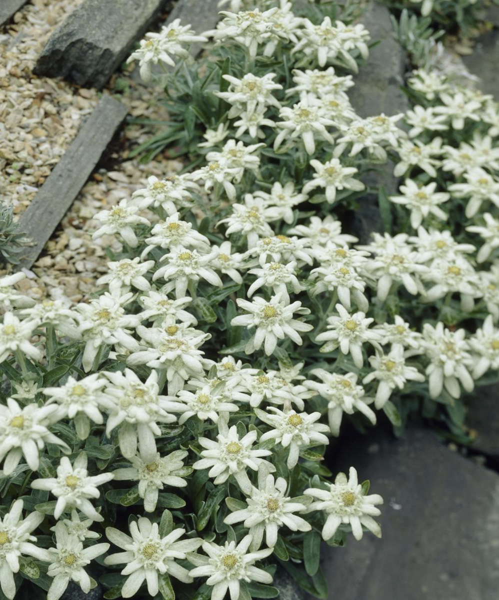 Происхождение Альпийский эдельвейс (Leontopodium nivale), также Leontopodium alpinum) - единственный в Центральной Европе, представляющий приблизительно 40 известных видов эдельвейсов, которые широко распространены в горах Европы и Азии. Он поселился В Альпах, Карпатах, как выходец из Азии после последнего ледникового периода. Альпийский эдельвейс принадлежит к семейству сложноцветных и является символом цветов для альпийской культуры. Рост Растет эдельвейс как многоплодный травянистый многолетник, который остается относительно пне высоким на земле. Он вырастает около 20 сантиметров в высоту и ширину и несет до восьми сантиметров большие цветочные головки на вертикальных стеблях. Листва Альпийский Эдельвейс имеет простые ланцетные листья, которые прорастают из розетки листьев. Подобно цветку, листья эдельвейса покрыты короткими белыми волосами, что придает им шерстяной вид, отсюда и латинское название (Leontopodium означает «львиная нога»). Эти пушистые волосы защищают растение от х