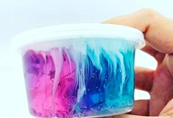 Горный слайм - это интересная разновидность слайма, когда два слоя разноцветной пластичной массы соединяются друг с другом, образуя горный пейзаж. Такую игрушку можно изготовить дома различными способами. Мы сегодня рассмотрим рецепт изготовления горного слайма из соды и левомицетиновых капель. Левомицетиновые капли в нашем рецепте мы будем использовать, как загуститель. Именно такой загуститель придаст нашей массе необходимую тягучесть, которая позволит создать красивый переход одного слайма в другой. Что нам понадобится Вода-1-2 ст. л. Канцелярский клей - 100 мл. Клей ПВА - 3 ст. л. Сода Левомицетин капли - 1-2 ч. л. Крем для рук питательный - 1ч. л. Пищевой краситель розовый, голубой, фиолетовый Блёстки по желанию Инструкция по изготовлению Прозрачная основа 1. В миску с водой добавляем 2/3 части канцелярского клея и немного соды, перемешиваем. 2. В полученную однородную массу вливаем загуститель-левомицетиновые капли. 3. Хорошо перемешиваем, пока не получится однородная эластичн