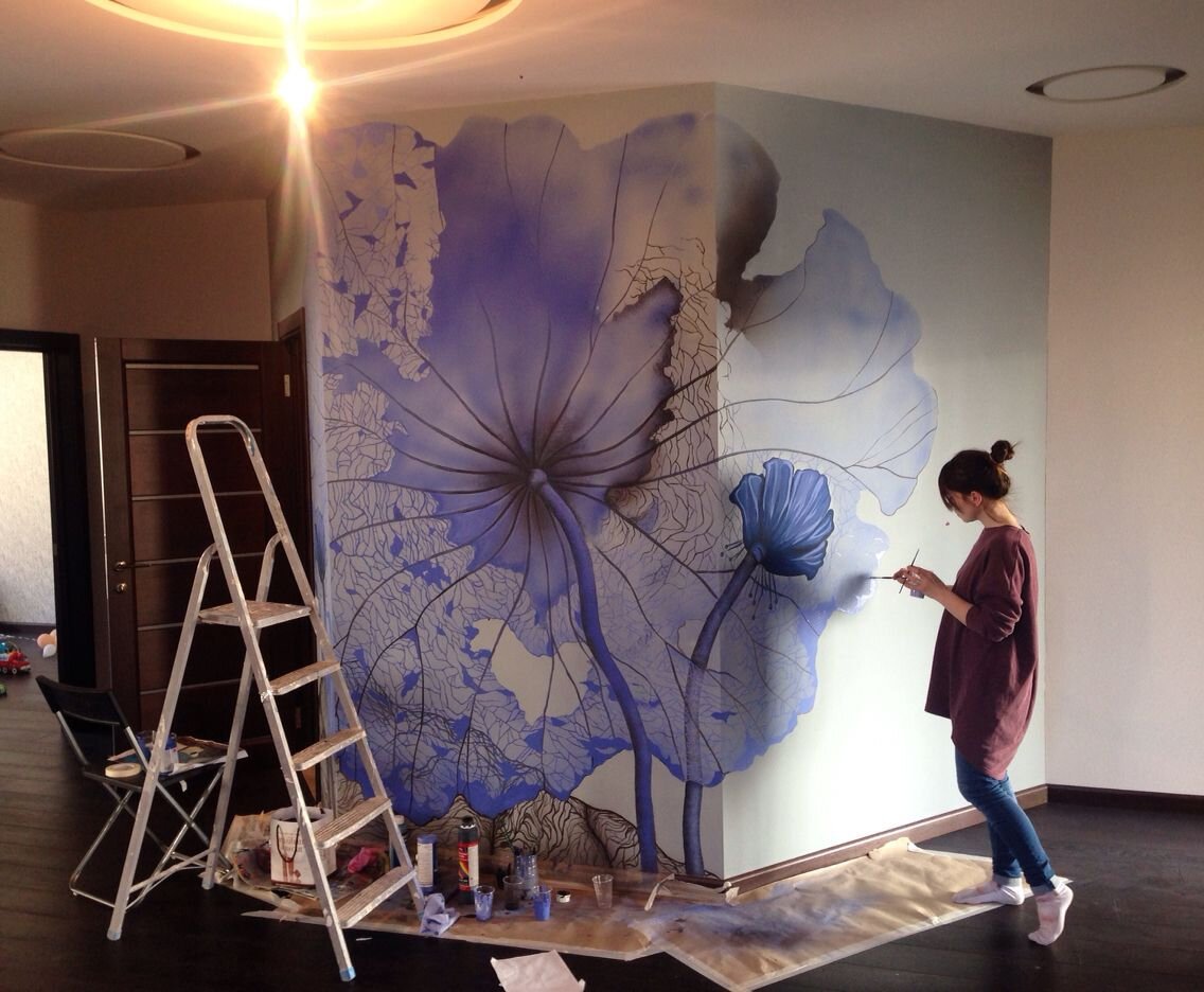 Есть много способов красиво оформить свое жилище, но, пожалуй, самый оригинальный и непохожий ни на что это художественная роспись. С помощью этого приема можно свою обитель превратить в необычайно уютное гнездышко или самый настоящий дворец. Роспись стен может не только выступать как способ декора, но помочь скрыть некоторые дефекты или замаскировать ненужные элементы конструкций, например выступы на стенах, балки, короба. Также можно органично вписать в интерьер различные его элементы: двери, окна, проемы, арки, ниши.