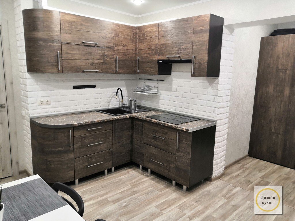 То, что вполне красивый кухонный гарнитур можно сделать своими руками, - уже не секрет. Нужно-то всего лишь: А. Рукастый мастер. Б. Знать, где подешевле заказать распил ДСП. В. Продумать дизайн. С. ВСЁ. 🙂 Мастер, который сделал эту кухню, явно преуспел в мебельном производстве. Фото и историей изготовления поделился со мной мой знакомый. Жена уехала в командировку, а он решил сделать ей сюрприз. Они только недавно переехали в новую квартиру, в которой ничего кроме спального матраса и обеденного стола не было. Кухня - первое, что хочется установить в самом ближайшем времени при переезде в новое жилье. Наверняка, многие хозяйки согласятся. Вот что получилось в конечном итоге. Вся кухня (вместе с фурнитурой), распилом и т.д. обошлась в 54 тысячи рублей. Кухня в новостройке. В помещении есть закуток (что-то типа кладовки без двери), куда поставили холодильник и духовой шкаф. Здесь же сделали барную стойку, чтобы дополнительная рабочая поверхность была и место для работы за ноутбуком (по
