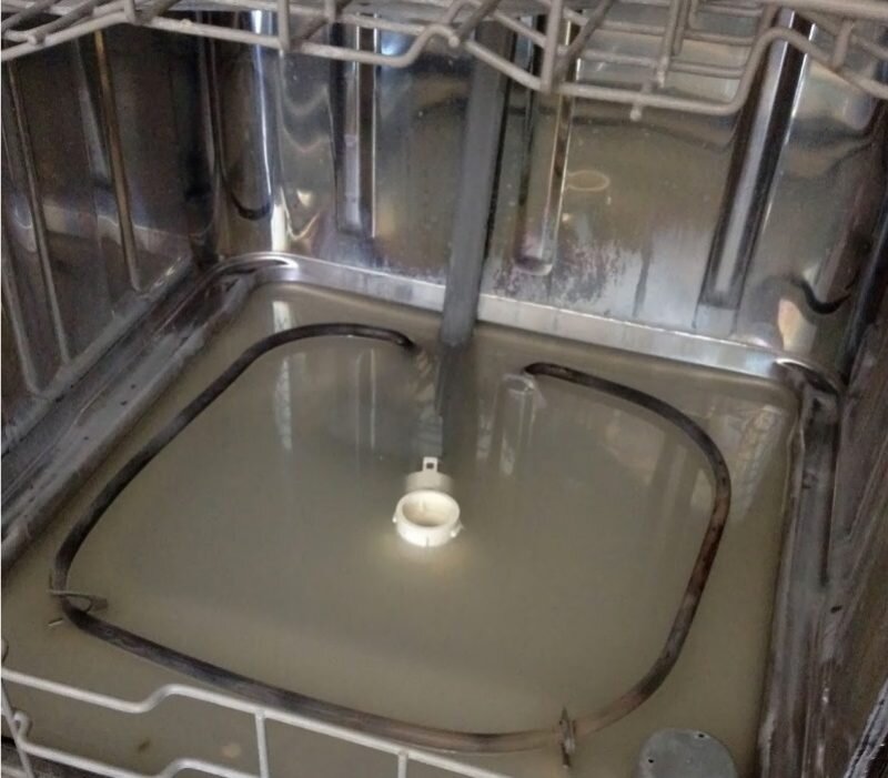 Если в посудомоечной машине стоит вода — это значит, что по той или иной причине невозможен или не выполняется её слив в канализацию. Причем он может быть именно невозможен (поломка, препятствующая слив воды на механическом уровне), так и не выполняться по каким-то временным и легко устранимым причинам (сбой в работе программы, например). Например, вода может стоять в посудомойке в том случае, если произошел перегиб или пережатие сливного шланга посудомоечной машины. В этом случае достаточно устранить это зажатие, и вода спокойно сольется в канализацию. Если засорился фильтр слива или сливного насоса. В ряде посудомоечных машин есть возможность добраться до него самостоятельно и прочистить фильтр, не разбирая посудомойку целиком и не допуская протечки стоящей в ней воды. Если такая возможность есть, она будет указана в инструкции к вашей посудомоечной машине. Если же это не помогло, то, возможно, из строя вышел сам насос. В этом случае однозначно придется вызывать мастера, слив