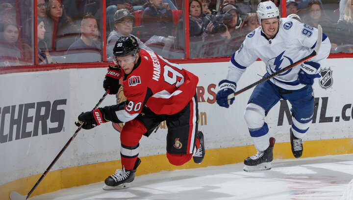 Оттава 4 - Тампа 2 Шайбы забросили: Уайт (О), Палат (Т), Пажо (О), Витковски (Т), Наместников (О), Наместников (О) пустые ворота. На матче присутствовало 11023 зрителей. Оттава набрала свои первые очки в сезоне. Сегодня они обыграли одну из сильнейших команд Лиги Тампу. Все россияне хорошо смотрелись в этой игре. Никита Зайцев играет впервой паре, получает 24 минуты игрового времени. Больше только у его напарника Тома Шабо. Анисимов и Наместников играют в третьей тройке. На их счету две шайбы. Виталий Абрамов сегодня провел на льду всего несколько смен, но у него еще ве впереди. Кучеров, хоть и провел на площадке более 20 минут, но активностью не отличался. Первый период закончился безрезультатно. Игроки больше удалялись, чем играли в хоккей. Вторая двадцатиминутка выглядела повеселей . Хозяева сумели выиграть этот отрезок игры 2-1. Заключительный период начался атаками парней Купера. На 9 минуте Витковски сравнивает счет. Казалось, что Тампа сейчас сомнет соперника. Но Оттава не собир
