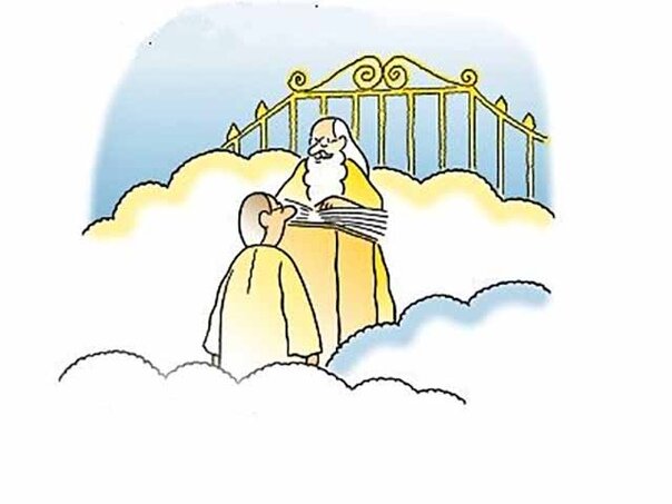«Мне жаль, но правила есть правила», — с этими словами Петр повел политика в Ад. Он вошел в ворота преисподней и оказался на зеленой поляне для гольфа. Рядом стоял шикарный ночной клуб, из которого повыходили его бывшие коллеги и друзья. На них были надеты шикарные костюмы, они смеялись, жали политику руку и вспоминали прекрасные дни на Земле, когда все они вели беззаботную жизнь и хорошо зарабатывали на других. Шампанское, икра, лобстеры, танцы, красивые девушки… Да еще и дьявол оказался дружелюбным парнем! Но день подошел к концу, и политику пришлось снова вернуться к воротам Рая. В Раю тоже было неплохо: чу