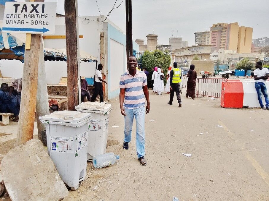 Путешествие на остров начинается с дакарского морвокзала, где вас атакуют неизбежные "помогайки", вот, на фото бежит с криком "Мисьё, я из вашего отеля, вы меня помните?" Самое просто - не реагировать, и через пару мину