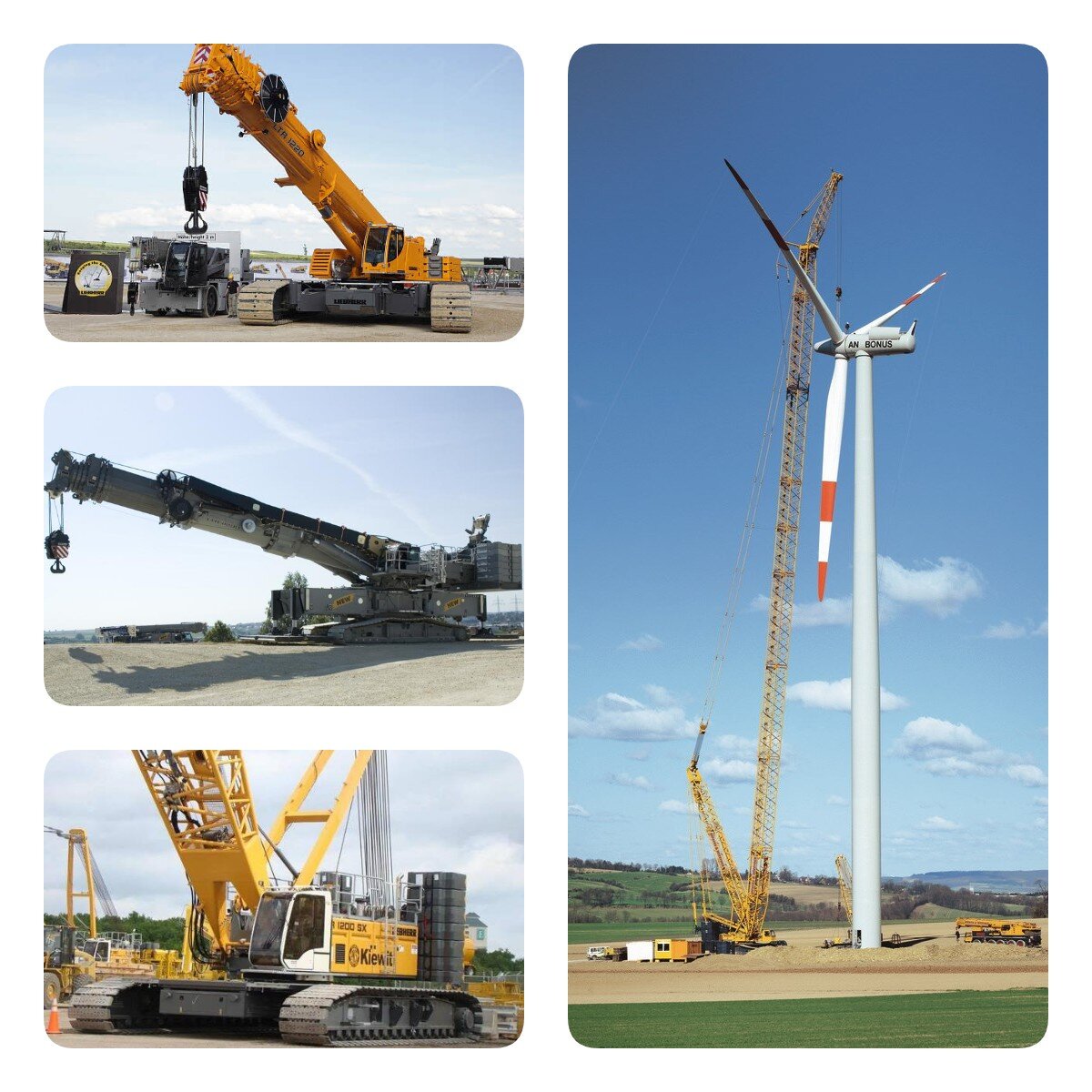 Гусеничные краны Liebherr серии HS, LTR, LR грузоподъемностью от 35,1 до 1190,5 тонн, с вылетом стрелы от 40 до 124 метров, и транспортным весом 54 до 3421 тонн.
