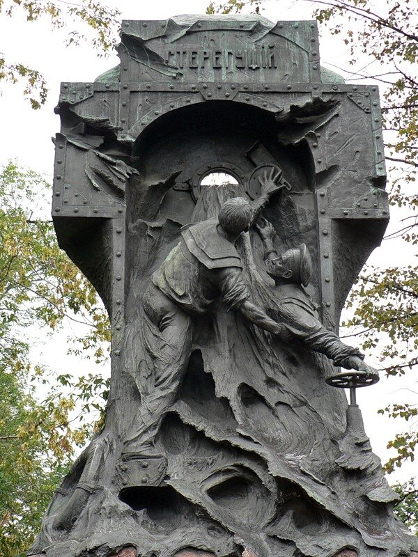 В конце апреля 1911 года,в Питере произошло событие,которое вошло в историю города,по нескольким причинам! 1. Состоялось открытие памятника , геройской гибели в бою Русско-японской войны,миноносца "Стерегущий" 2.Памятник построен ,на народные пожертвования! 3.На открытие памятника,присутствовал Император Николай 2 4.Вода из открытого кингстона ,лилась настоящая,с течением времени,меняли и убирали трубы,а в 1971 убрали их и памятник принял тот вид,который известен всем! 5.Это последний памятник поставленный,в Питере,до революции! ну и последнее ,но не по значению 6.ОШИБКА! вот именно ,об этом и поговорим.Очень редко,можно увидеть фото обратной стороны памятника.Там на тёмном камне,тёмными буквами,дано описание последнего боя!Там указаны имена павших в бою,офицеров и матросов!Бой был без шансов на победу и русские дрались,до последнего и вот когда осталось двое матросов,они исполнили свой долг,открыли кингстоны и затопили "Стерегущий" Сомнений, в отваге русских моряков ,НЕТ!в том что мин