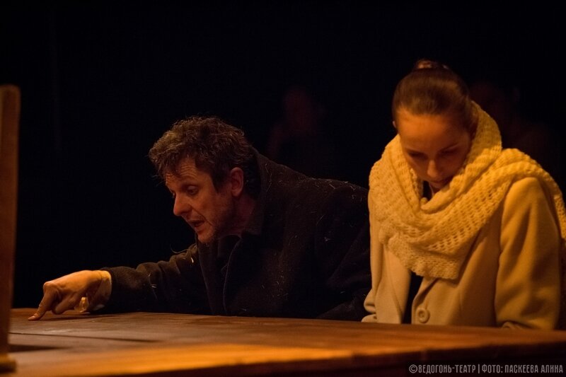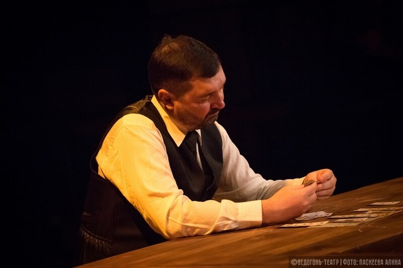 Знаете, после этого спектакля я внезапно полюбила Порфирия Петровича (его здесь играет обаятельнейший Антон Васильев). Помните, это следователь, который занимается делом Раскольникова. Порфирий Петрович персонаж непростой, мне он всегда виделся человеком уж слишком себе на уме, постоянно чего-то не договаривающим, да еще и с вечной ехидцей. Знаете, вот бывают такие люди, когда не сразу поймешь, шутит он или всерьез. А тут внезапно я увидела просто нормального человека, который делает свою работу. И классно делает, между прочим. Неторопливо и с удовольствием. Да, и ехидца осталась, и хитрость в уголках глаз, но вот впечатление вдруг совершенно иное - спокойный профессионал. И вот эта трансформация и остальное перевернула. Я всегда смотрела на "Преступление и наказание" довольно банально: как на историю погрязшего в философских мечтаниях студента и его последующего раскаяния. "Тварь ли я..." и все такое. Остальные персонажи составляли интересный насыщенный фон, местами о