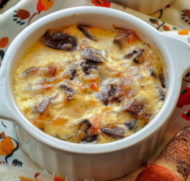 Замечательный рецепт жульена с курицей. Пошаговый процесс приготовления блюда. Блюдо описано подробно, доступно и понятно. Вкуснейший куриный жульен сделать нетрудно, а кушать - одно удовольствие... Ингредиенты 1.Грибы: почистить, нам понадобятся только шляпки; В кастрюльку налить воду (1 л), поставить на огонь, довести до кипения, добавить соль (1 ч. ложка). Выложить грибы и отварить 5-10 мин. Грибы отварные откинуть на дуршлаг. 2.лук почистить; порезать кубиками. Разогреть сковороду, выложить сливочное (налить оливковое) масло (20 г). В горячее масло выложить лук, обжарить на сливочном (или оливковом) масле, помешивая, на среднем огне 2-3 минуты. 3.куриные грудки Куриные грудки: вымыть; порезать кубиками 4.Зелень промыть, мелко нарезать. 5.Разогреть другую сковороду, добавить масло (25 г). В горячее масло выложить подготовленное куриное мясо. Куриные грудки обжарить на небольшом огне, помешивая, около 10-15 минут. 6.Разогреть другую сковороду, добавить масло (25 г).