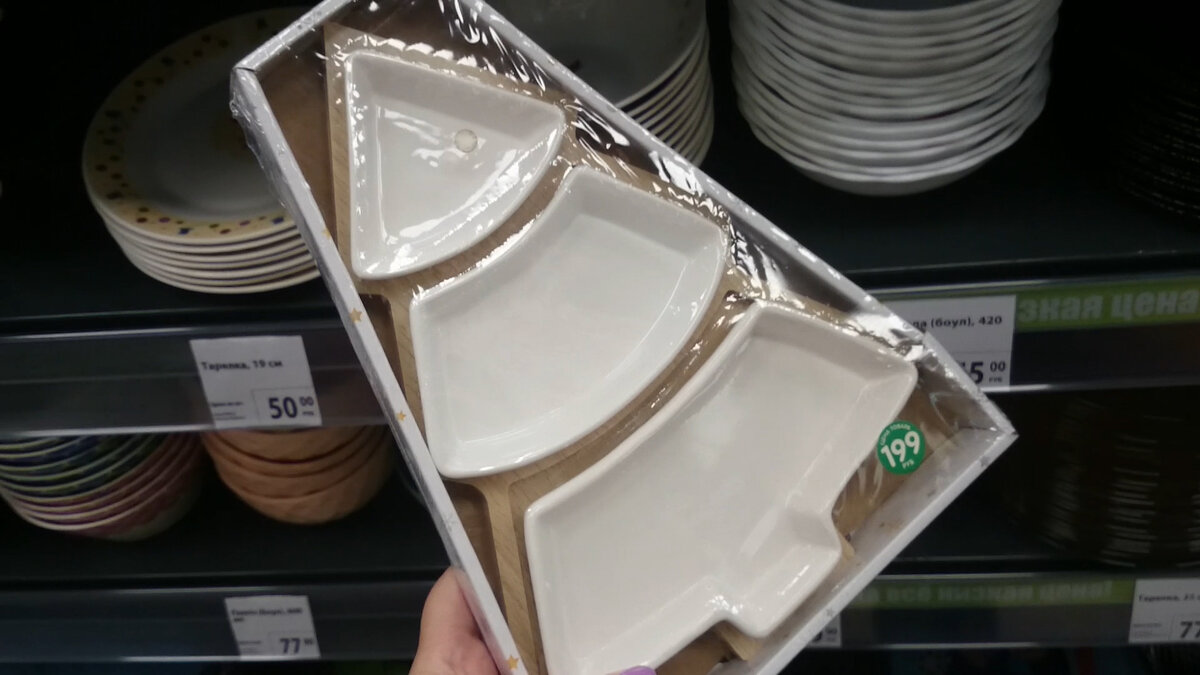 Всем привет! В этом обзоре только новинки из Фикс Прайса, от которых я в восторге. Купила конечно я не все из этого товара, потому что все понравившиеся новинки скупать в Фикс Прайсе - это никаких денег не хватит. Но посмотреть зато на них можно бесплатно! Менажница "Елочка" Вот эта вещица - одна из самых удачных, по моему мнению, за последнее время новинок Фикс Прайса. По цене и качеству она превосходит многие товары. Конечно это новогодняя новинка, но надеюсь, что такую менажницу привезут другой формы в Фикс Прайс и я ее обязательно куплю! А теперь собственно о товаре - это менажница в виде елочки. На деревянной подставке расположены три доломитовых блюда. Вещица просто шикарна. И поверьте, цена 199 руб. за такую вещь, это очень недорого. Размер менажницы 27х20 см. Есть два варианта расцветок блюд, входящих в комплект. Носки женские. Мимо таких красивых носков я пройти мимо просто не могла и конечно их купила. Тоже новинка Фикс Прайса. Цена таких теплых носочков 77 руб. Состав 72% х