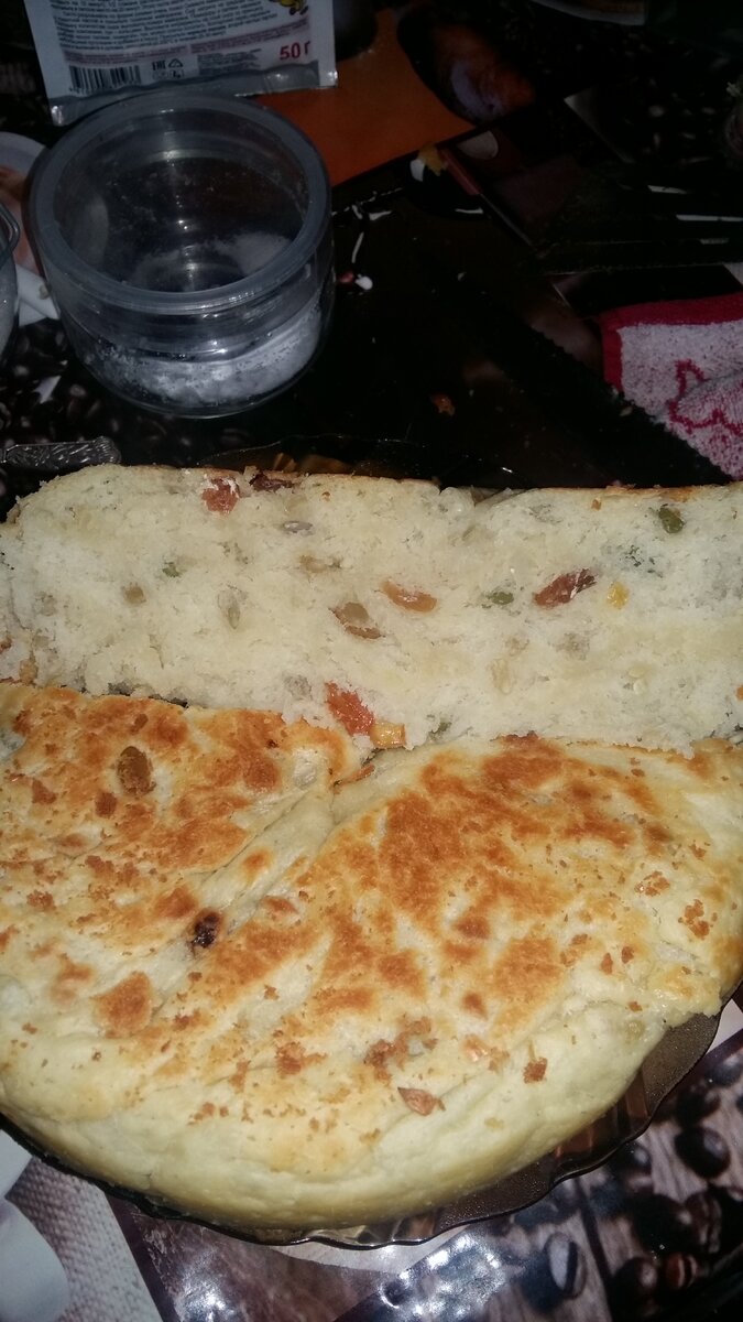 Первый раз делала хлеб, не судите строго, по вкусу он получился очень вкусный. Хлеб с семенами подсолнуха, тыквы и изюмом. Нам понадобиться : Мука 500 гр Дрожжи 1 пакетик Соль чайная ложка Сахар чайная ложка 200 мл тёплой воды 2 столовые ложки растительного масла И любые семечки или цукаты Разводим дрожжи в теплой воде с сахаром и солью. Дрожжи добавляем в теплую воду чтобы пошла реакция, оставляем минут на десять. Вот такой результат получился у меня, после добавляем муку и пару столовых ложек растительного масла и начинаем вымешивать. Добавляем семечки и ещё маленько муки, чтобы хорошенько в мешать семечки. Тесто должно получиться не густым, оставляем тесто минут на двадцать постоять. После того как тесто постояло двадцать минут, уминаем его маленько, чтобы выпустить пузырьки воздуха. Промазываем чашу мультиварки растительным маслом и выкладываем тесто в чашу. Так как у меня нет режима хлебопечки я ставлю на программу разогрев и оставляю его ещё на двадцать минут. П