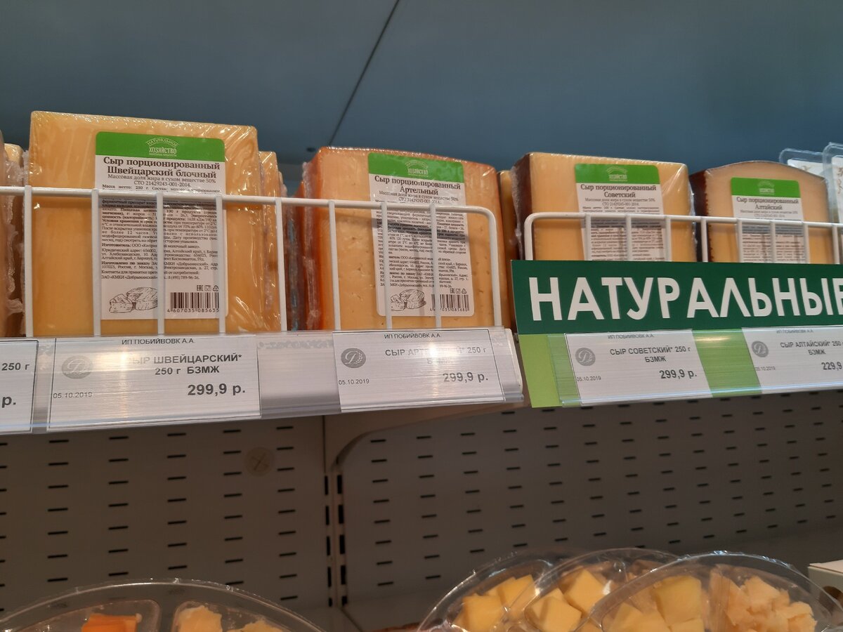 Давно я не заходил в магазин «Добрынинский и партнёры». Если вы живёте в Москве, то знаете, что в этой сети продаются не только торты и пирожные комбината «Добрынинский», но и другие продукты. Да и магазины нередко состоят из нескольких разных торговых точек. Я в них захожу нечасто по двум причинам. Во-первых, ближайшие — возле метро и не по пути к нему. А во-вторых, там как-то дорого. Эта сеть — чуть ли единственное место в Москве, где можно купить сыр «Артельный» алтайской компании «Киприно». Я его однажды попробовал на одном из кипринских заводов, в селе Староалейском (его там, кажется, и придумали), и с тех пор помню, что он хороший. Но раза два я приценивался к нему в «Добрынинском» — и не покупал. Так и перестал в эти магазины заходить. А вчера зашёл как раз из-за «Артельного». Увидел вывеску и подумал: надо посмотреть, возят ли его ещё. Да, возят. А ещё с тех пор, как я был в «Добрынинском и партнёрах» в последний раз, у них появилась своя торговая марка на манер «Мяснова» и «В