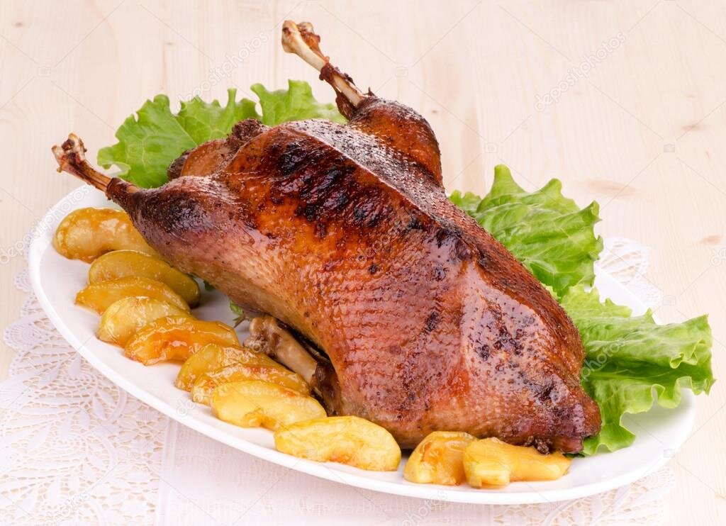 Темное, питательное и очень вкусное мясо утки высоко ценят кулинары многих стран. Блюда из этой птицы популярны во французской и китайской кухне. Но если там, как правило, предпочитают готовить утиные грудки и ножки, то в русской кухне предпочитают птицу запекать целиком. Утка с яблоками – праздничное блюдо, безумно вкусное, и вы должны непременно приготовить его на ближайшее домашнее торжество. Из расчета на 5-6 порций понадобится: