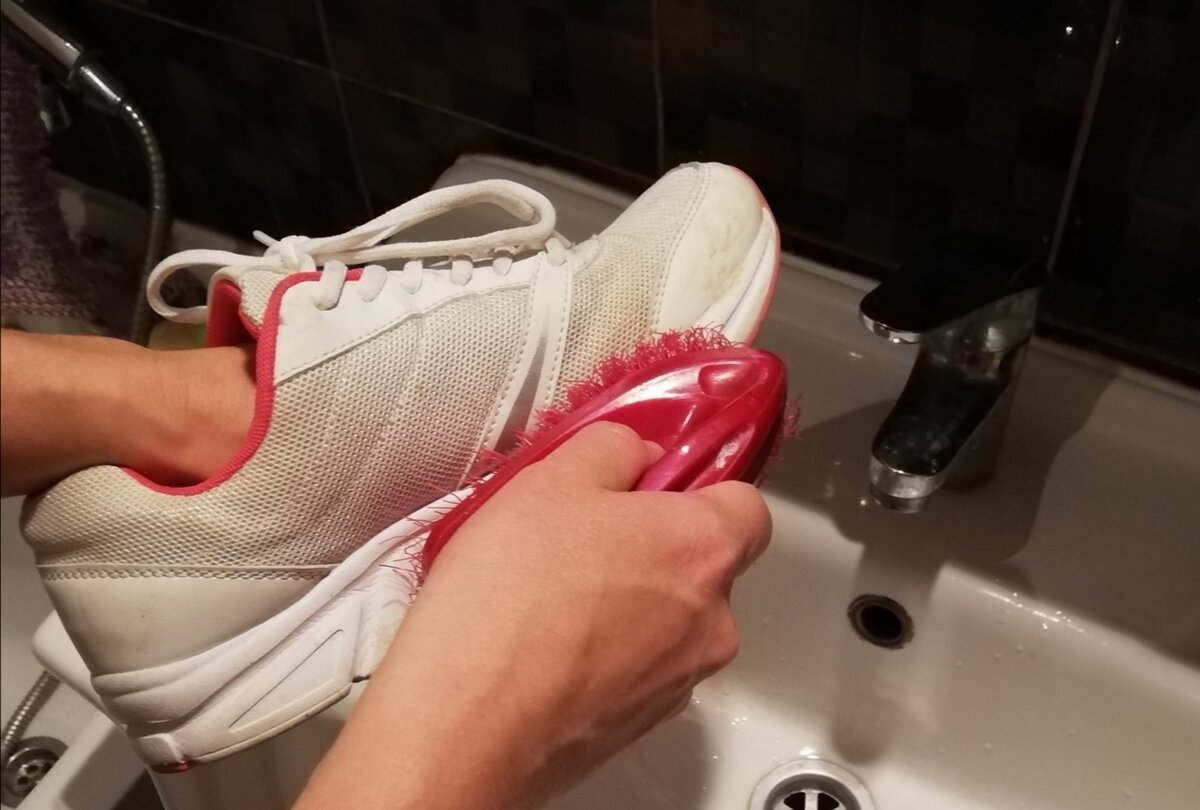 - Разведите 3 столовые ложки отбеливателя в 200 мл воды и в полученный раствор аккуратно опустите подошву обуви, так чтоб основная часть не попала в раствор. Примерно через пол часа прочистите щеткой и промойте водой.