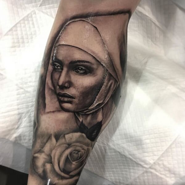 В целом татуировка с монашкой красивая, но спорная. Нужно хорошо продумать эскиз со своим мастером, которому вы доверяете. Ведь в данном случае мастер должен быть еще и хорошим художником, так как монашек изображают в основном очень красивыми.